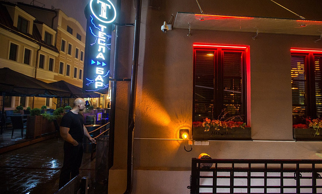 Tesla bar — коктейльный бар в формате клуба. Днем здесь проходят разнообразные мероприятия (стендапы, рэп-баттлы, выступления кавер-бэндов), ночью — яркие вечеринки с шоу-программами, DJ-сетами и МС-ведущим, когда весь бар трансформируется в единый танцпол. Имеются vip-зоны, где можно уединиться, заказать кальян и расслабиться, а также уютная летняя терраса, которая становится продолжением бара с небольшим количеством столов (3 стола), где можно провести спокойный вечер. Барная стойка расположена таким образом, чтобы обслуживать гостей на террасе и проходящих мимо гуляющих по ул. Зыбицкой, которые желают взять что-либо из напитков с собой. Бар Tesla bar имеет молодой индустриальный интерьер с обилием свободного пространства и сохранением промышленных деталей. Здесь можно встретить дизайнерские картины изобретателя Никола Тесла и объектами, связанными с его деятельностью (лампы, светящаяся стена с физическими формулами). Особо уединенную атмосферу в баре «Тесла Бар» создает отсутствие классического освещения и наличие специального светооборудования (стробоскопы, световые лучи, ультрафиолетовые лампы, светодиодные ленты). Кухня в Tesla bar («Тесла Бар») смешанная, в приоритете — европейская. В меню «Тесла Бар» — острые куриные крылышки в кунжуте, сэндвич с беконом, севиче с лососем и авокадо, сыр бри в в панировке с брусничным соусом, урамаки с чука салатом и лососем — каждый здесь сможет найти блюдо по вкусу. Особенности коктейльной карты: 18 авторских коктейлей, основанные на фирменных настойках, фирменные домашние настойки (10 видов), сеты шотов для больших компаний. Бар Tesla bar может стать отличным местом для проведения торжеств. Зал «Тесла Бар» способен с комфортом разместить до 50 гостей. Свободная расстановка столов, зонирование пространства, разработка индивидуального меню — все оговаривается заранее. Есть возможность предоставления программы с диджеем и ведущим, караоке, танцпол, кальяны. Индивидуальный подход, высокий профессионализм и вежливое обслуживание — гарантируются.
