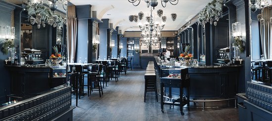 Интерьер Grand Сafe выполнен в современном европейском стиле с французским акцентом. В оформлении присутствует много дерева, спокойная палитра натуральных оттенков, обилие зеркал и элементы классики. Изюминка декора — фото коммунальных квартир из советского прошлого, а также панорамные окна, через которые открывается вид на оживленную улицу Ленина. Заведение функционально разделено на несколько зон: зона бистроздесь можно курить), ресторанная зонанекурящая) и банкетная комнатана 12 человек). В теплое время года посетители могут разместиться и на летней террасе. По вечерам в пятницу и субботу для гостей играет диджей.