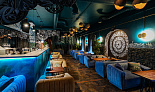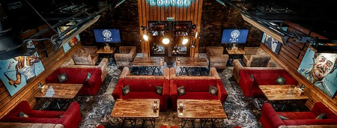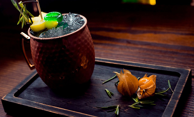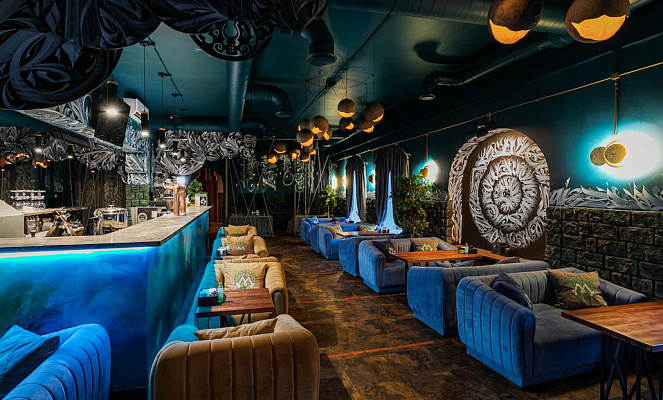 Интерьер заведения выполнен в стиле лофт: в декоре зала использовались дерево, кирпич и металл. Атмосферу уюта и релакса «Мята Lounge» придает приглушенный свет и густой ароматный дым бестабачного кальяна, а мягкие диваны располагают к тому, чтобы расслабиться и оставаться здесь как можно дольше. Кроме того, в кальянной есть аутентичная, окруженная цветами и растениями летняя терраса, расположенная во внутреннем дворике здания и рассчитанная на 50 человек. По вечерам здесь будут выступать известные кавер-бэнды и диджеи. Шеф-повар заведения Артем Осипчик имеет 20-летний опыт работы и профессиональный награды: диплом международной кулинарной олимпиады в Эрфурте (Германия). Работал шеф-поваром в ресторане «James», бренд шеф-поваром караоке-клубов «Богема» и «Опера», шеф-поваром ресторана «Grand Bellagio». Основной акцент в кафе-кальянной сделан на европейскую и американскую кухни. Среди разнообразия закусок, салатов, супов и горячих блюд в заведении особенно рекомендуют попробовать филе-стейк «Огненный Джек», который поджигается прямо при госте, а также томатный суп с пармезаном и сырной пеной. Отдельного внимания заслуживают бургеры и клаб-сэндвичи, начинки у которых самые разные. Есть в меню и бургер «Веган», который состоит из булочки, жареного тофу, овощного «Суго», горчичного соуса, сельдерея, моркови и свежего перца. Среди напитков в меню кафе-кальянной представлены авторские коктейли. Есть свежевыжатый соки, элитные чаи.