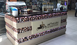 К кофе есть приличный выбор сиропов. Кроме того, в меню есть сэндвичи, пироги, кукис и пирожные, горячий шоколад и чай Greenfield.