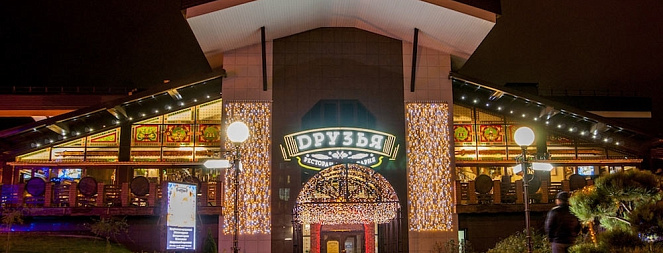 Ресторан-пивоварня «ДРУЗЬЯ» – один из крупнейших ресторанов в мире. Мини пивзавод чешского производства PACOVSCE STROJIRNY с годовой производительностью пива 350 000 литров, 47 сорта пива собственного производства. Каждый день здесь отдыхает до 2000 гостей, выпивается более чем 500 литров пива, прослушивается около 4 часов живой музыки. Залы ресторана подходят для любого события, любого формата: конференц-зал для деловых встреч, панорамная стойка для тех, кто хочет быть ближе к артистам на сцене, дружеский баварский, гостеприимный чешский или стильный ирландский залы – для большой дружной компании. А если вы пришли за уникальными вкусами? – Добро пожаловать в Бар крафтового пива! Летняя терраса и невероятные витражи ждут вас в любом из основных залов ресторана. Основное меню состоит из разнообразных традиционных блюд пивных стран. Здесь вы найдете как сытные большие блюда, так и легкие закуски и салаты. Обеденное меню предлагает целый комплекс из первого, второго и приятного комплимента в виде напитка, вид которого меняется в зависимости от поры года. Также обеденное меню обновляется каждые две недели. Качественный звук, профессиональное световое шоу и атмосфера грандиозного праздника от лучших кавер-бэндов города ждет вас каждый день. Также в ресторане устраиваются концерты для самой разной публики: группа «Крематорий», «Несчастный случай», «Uma2rman», «IOWA», «Quest Pistols», певица Линда и другие уже порадовали гостей ресторана и это только начало. Ресторан «ДРУЗЬЯ» — место, где корпоратив, день рождения, финал УЕФА или пятница с друзьями превращается в незабываемый праздник!