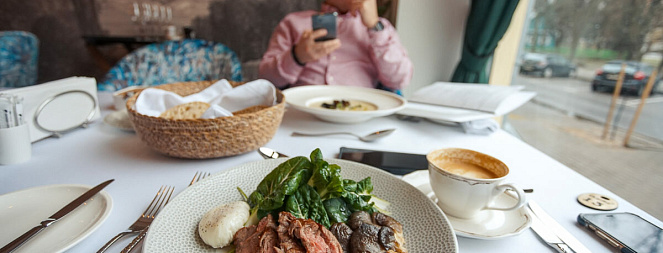 Из витринных окон «Шарли» открывается панорамный вид на Свислочь и дом I съезда РСДРП — один из самых старых музеев Минска. Его открыли в 1923 году. Чуть выше по Коммунистической виднеется знаковый для советской послевоенной архитектуры дом «под шпилем». Здесь посетителей ждёт классический английский стиль с элементами ар-деко. Основной упор в меню сделан на микс кухонь и гастрономическую классику. Много сливочного масла, вино, овощи по сезону. Четыре главных продукта на кухне: фуа-гра, гребешки, утка и мясо. Одно из ключевых блюд в меню: луковый суп по старинному рецепту, который когда-то нашли в архивах французского районаЛе-Аль— рассказывает управляющий. —Безусловно, даже классическое блюдо шеф-повар пропускает через свое видение. Поэтому веяния определенных трендов в нашем меню проследить можно: например, акцент на ЗОЖ или нотки Востока или Азии, которая последние лет десять то со спадами, то со взлетами заметно влияет на мировую гастрономию. В винной карте около 130 позиций. Средний чек: 80-100 рублей.