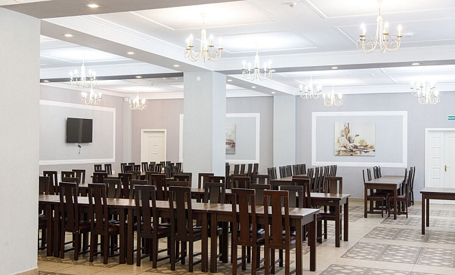 Также банкетный зал Физкультурно-спортивной базы ФПБ занимается организацией трехразового и пятиразового питания с учетом личных пожеланий и потребностей. Обеды и кофе-паузы для различного рода мероприятия: бизнес-встречи, семинары, конференции. В меню — европейская и белорусская кухня.