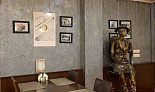 Интерьер бара привлекает строгой, но в то же время очень элегантной цветовой гаммой, которую прекрасно дополняют изящная мебель, утонченные светильники и картины в аккуратных рамках.