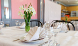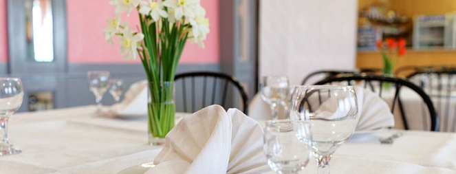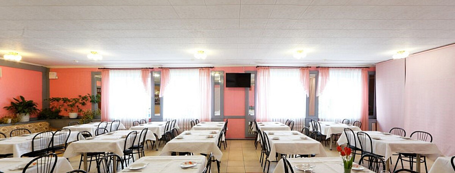 «Магистраль» организует также банкетное обслуживание на праздниках. Зал вместимостью 90 человек оформлен в светло серо-розовых тонах. Минимальное количество гостей – 20 человек. Возможна свободная расстановка столов, также есть место для танцпола.