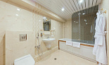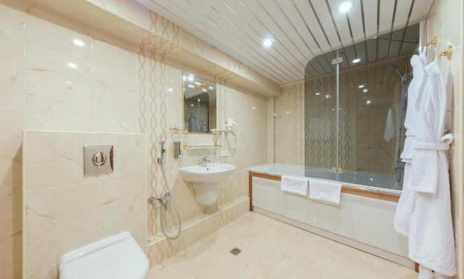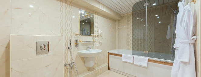 В номерах высшей категории дополнительно установлены кондиционеры, присутствуют тапочки, халаты, зубные наборы, в ванной комнате – фен.
