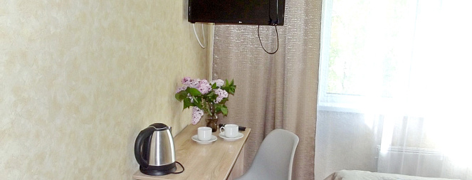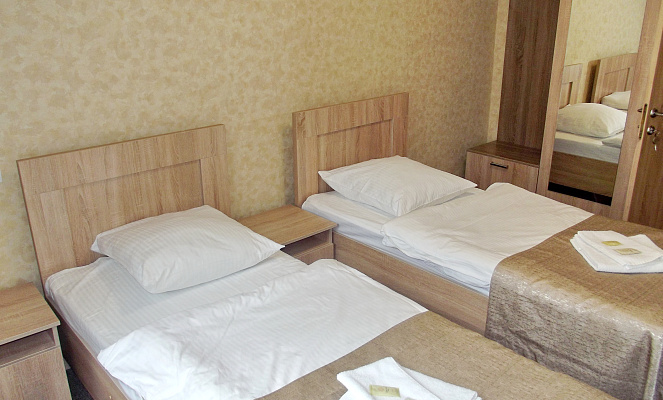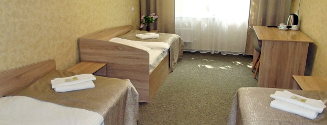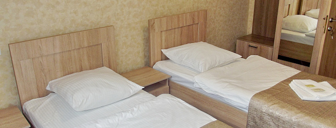 Мы предлагаем своим гостям 2-х местные и 3-х местные, а также семейные номера по доступным ценам. Номера оснащены прекрасными спальными местами и необходимой мебелью, телевизор, чайник а также бесплатным доступам в Интернет через технологию Wi-Fi. Возможны как посуточная аренда, так и долговременное проживание и групповое размещение.
