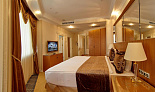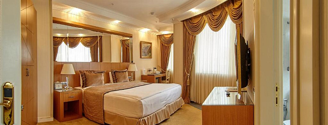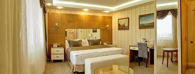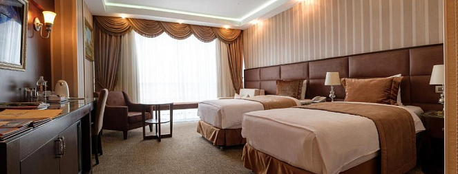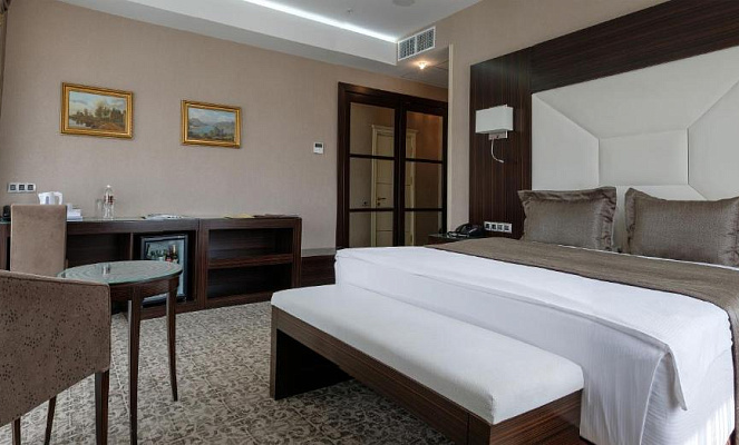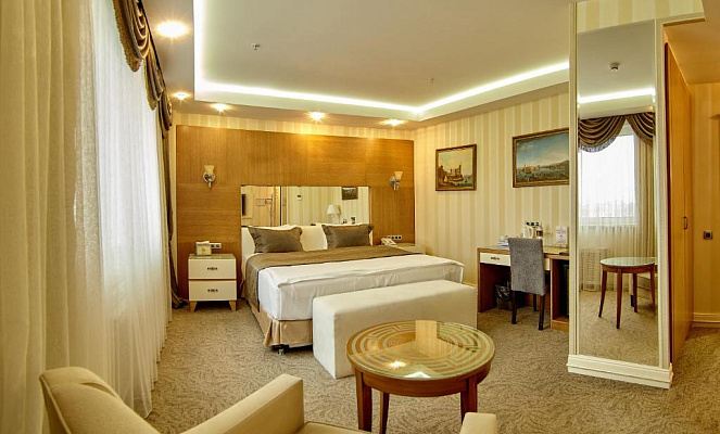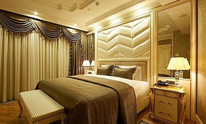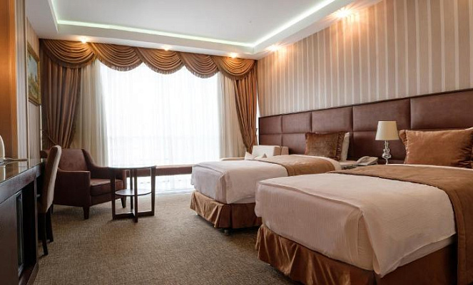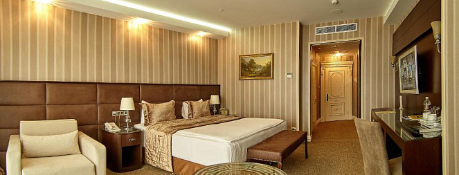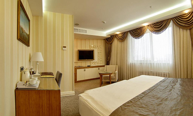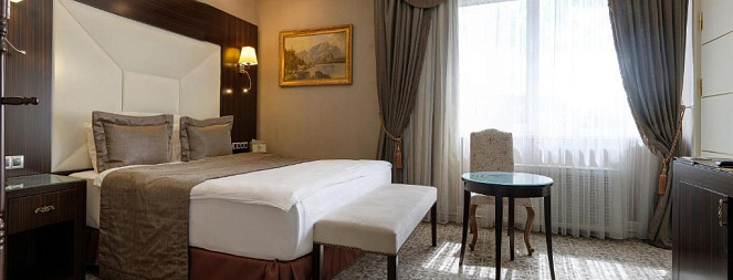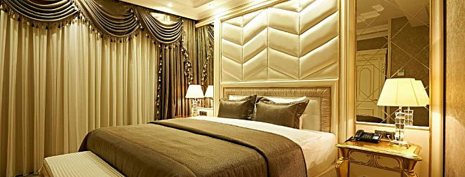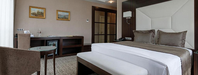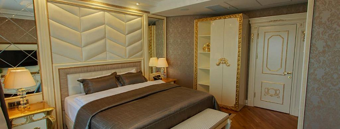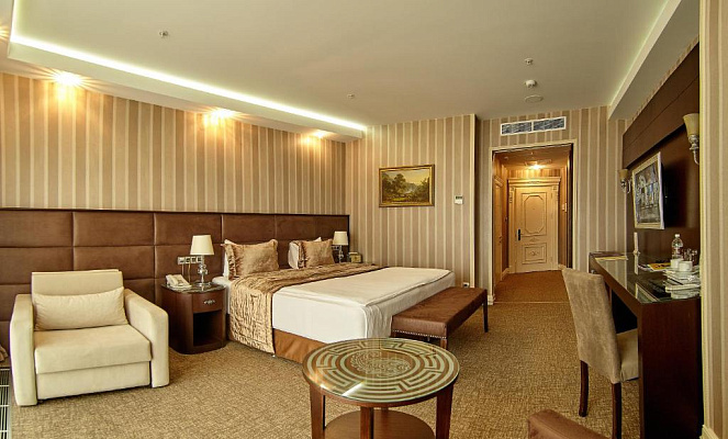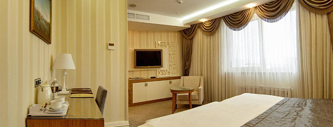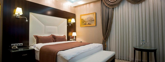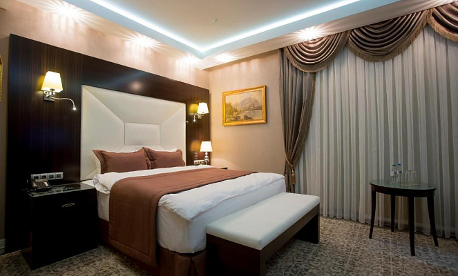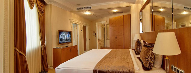 Для вашего отдыха 35 номеров различных категорий: от скромного и комфортного Стандарта до роскошного Королевского Люкса, сауна с бассейном, фитнес-зона, ресторан, бар, room-service, казино, бесплатный Wi-Fi, бесплатная парковка.