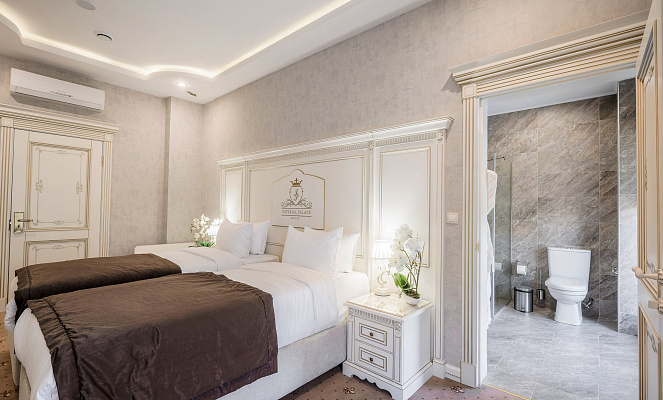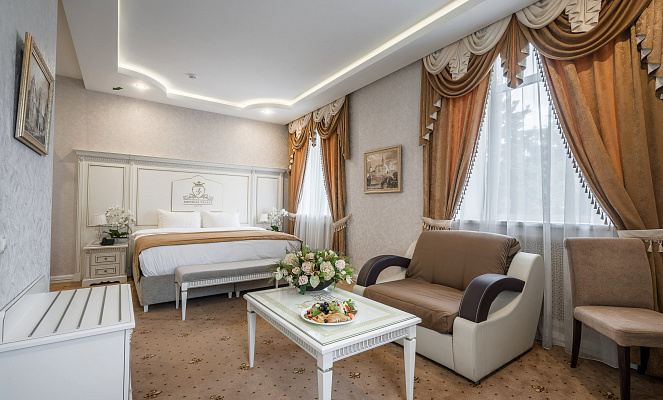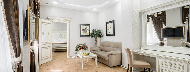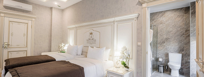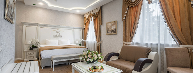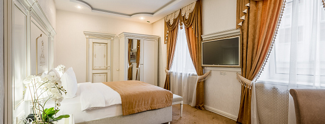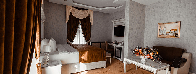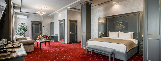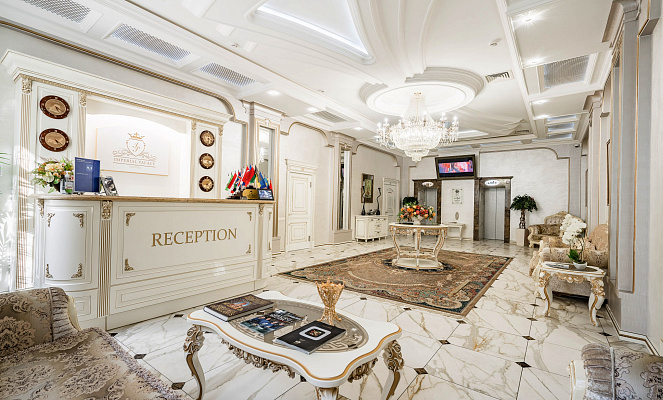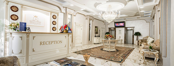 Отель "IMPERIAL PALACE" в центре Минска – это изысканное сочетание истории и современности. Интерьер Отеля выполнен в роскошном классическом стиле. В убранстве номеров доминируют оттенки жемчуга и слоновой кости, мебель и аксессуары из натурального дерева украшены росписью и позолотой. Каждый номер оснащен телевизором, кондиционером, телефоном и мини-баром. Кровати с ортопедическими матрасами и высококачественным бельем позволят полноценно отдохнуть после рабочего дня или увлекательной прогулки по городу, а вкуснейший завтрак в формате «шведский стол» зарядит энергией для нового интересного дня.