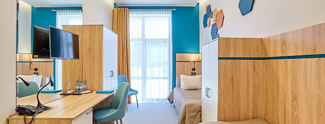 - 10 однокомнатных двухместных номеров категории TWIN;