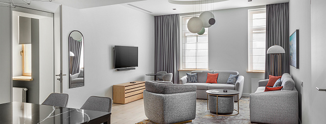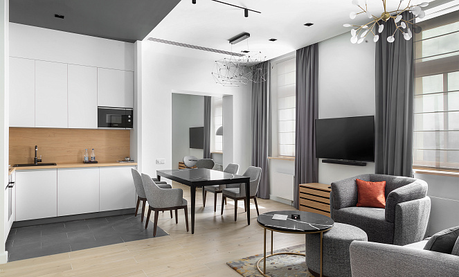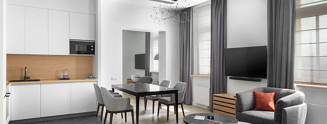 В отеле The Basilian Minsk представлены 39 просторных и элегантно оформленных номеров, которые удовлетворят потребности любого путешественника и идеально подойдут как для деловых поездок, так и для отдыха. Каждый номер оснащен кухней, оборудованной современной техникой.