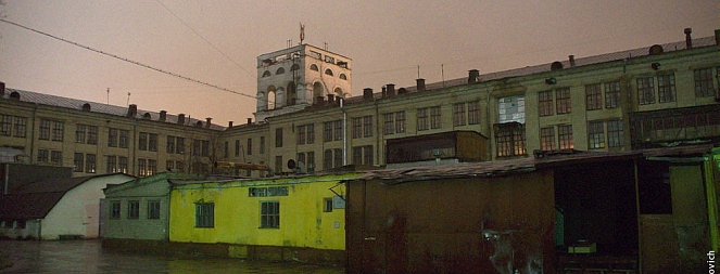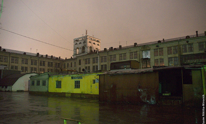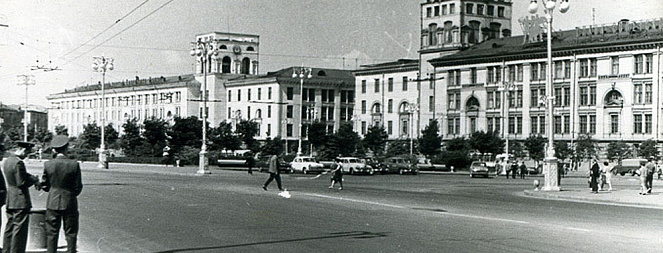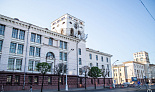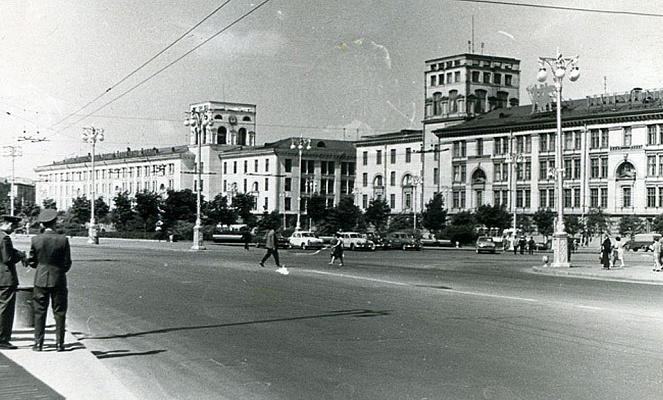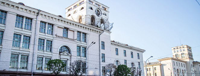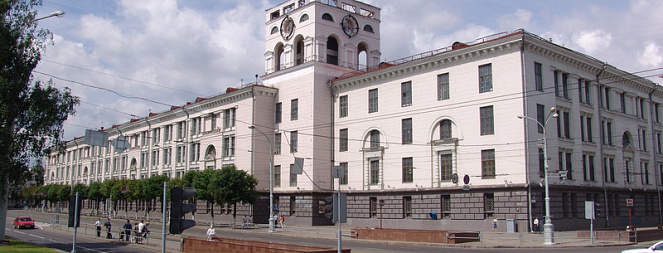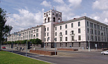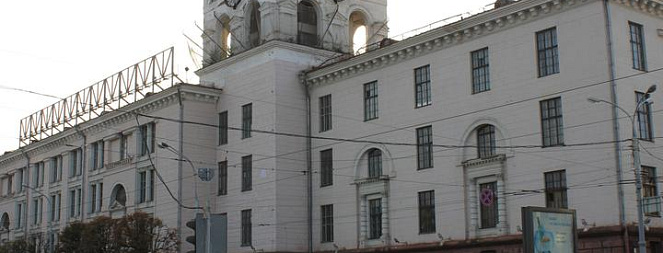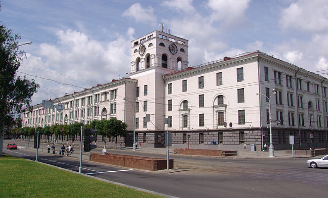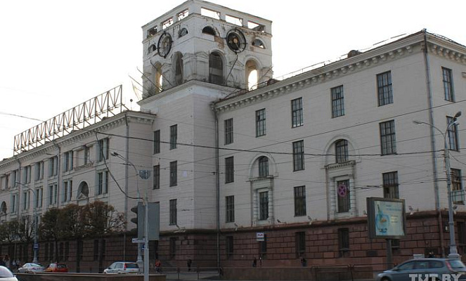 Полиграфкомбинат – одно из первых многоэтажных производственных застроек в Минске, в которых воплощены новые на то время архитектурно-художественные и объемно-планировочные приемы. В композиции фасада использованы разнообразные элементы классического наследия: трехугольные фронтончики, лепной декор, люнеты, рустовка.