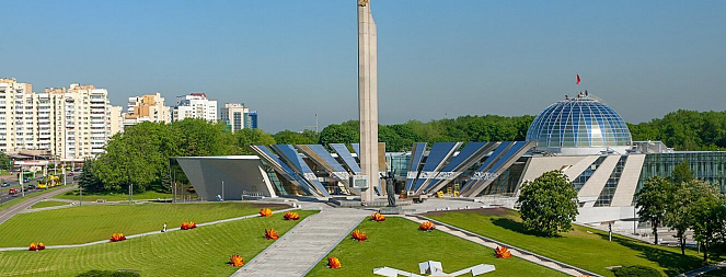 Архитектурный комплекс «Минск — город-герой» включает в себя высокий бетонный обелиск и бронзовую скульптуру «Родина-мать». Обелиск установлен на возвышенности в начале парка Победы, перед зданием Белорусского государственного музея истории Великой Отечественной войны. Нестандартные пространственно-архитектурные приемы и образные решения создают у посетителя ощущение величайшей трагедии и, одновременно, погружают в атмосферу мужества и подвига.