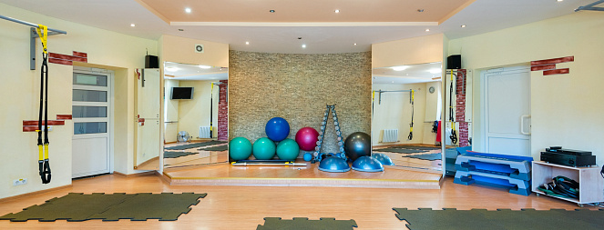 - 4 полностью оборудованных инвентарем залов фитнеса;