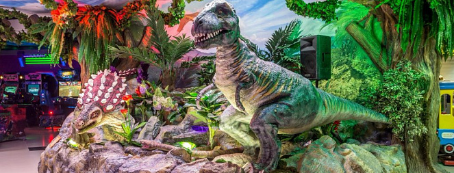 Входя в страну ДинозавриЯ, вы попадете в доисторический мир джунглей и динозавров, а спускаясь по винтовой лестнице на нижний ярус — окунетесь в подводный мир. Декорации в помещениях будут имитировать то джунгли, то морское дно с коралловыми рифами.