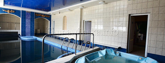 В вашем распоряжении большой бассейн 11 х 4 метра с чудесным водопадом и гейзером. Многие наши гости говорят о том, что им настолько нравится плавать в нём, что даже не хочется его покидать. Но это еще не все! Расслабляющее джакузи на 4 персоны будет прекрасным дополнением ко всему, что вы будете делать в нашей сауне. Если же после парной вам хочется окунуться в холодную воду, то для этого здесь предусмотрена купель.