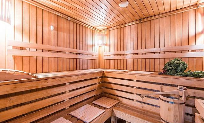 К услугам отдыхающих русско-финская сауна. Посещение бани с хорошим паром — классический способ расслабиться всем телом, закалиться, очистить и оздоровить организм. Воду можно лить на камни, а также использовать веники, чтобы добиться потрясающего эффекта, повысить иммунитет и общий тонус. После банных процедур не помешает искупнуться в бассейне с подсветкой и подогревом.