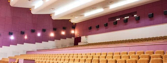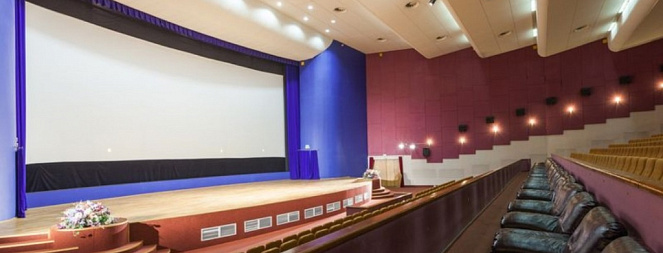 Киноконцертный зал с мягкими театральными креслами, большая сцена, дополнительное сценическое освещение, закулисная часть с гримерными и гостевой, один из самых больших экранов, наличие кинобара – все это не только для качественного кинопоказа, но и для профессиональной организации значимых мероприятий и концертов. В зале насчитывается 584 места, из них 26 относятся к vip-ряду с мягкими кожаными креслами, выделенными специальными ограждениями в самом центре зала. Большие уютные фойе первого и второго этажей с постоянной фотоэкспозицией самых известных киноактеров Беларуси. В фойе второго этаже постоянно экспонируются выставки живописи, графики и фото известных белорусских и зарубежных художников. В фойе кинотеатра работает современная уютная кофейня «Cinema Bar». На территории кинотеатра расположена автостоянка. В «Доме кино» создана безбарьерная среда для людей с ограниченными возможностями.