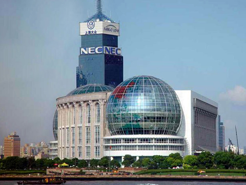 Шанхайский международный конференц-центр, общая площадь которого составляет 110 000 квадратных метров, оснащен самыми современными помещениями. В центре он состоит из двух огромных сфер, на которых из стекла выполнена лоскутная карта мира. Карта означает, что Шанхай обращен к миру. Внешняя стена центра состоит из навесной стены из микрокристалла, гранитной навесной стены, навесной стены из алюминиевых пластин, навесной стены класса и т.д. Центр, где в сентябре 1999 года проходил глобальный форум Fortune, состоит из большого банкетного зала площадью 4 400 кв. м, пресс-центра площадью 3 600 кв. м и почти 30 залов и конференц-залов различных размеров и рычагов для удовлетворения потребностей различных типов встреч. В центре 270 номеров для гостей, включая президентские люксы, представительские люксы и стандартные люксы.