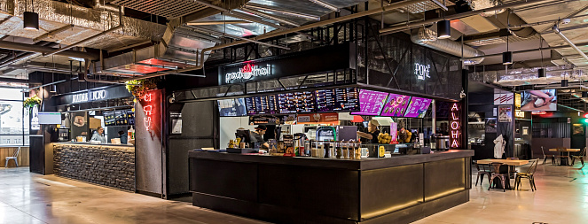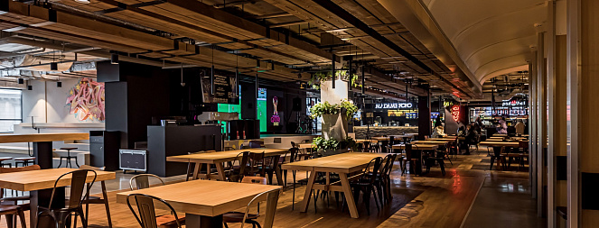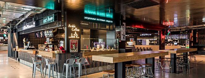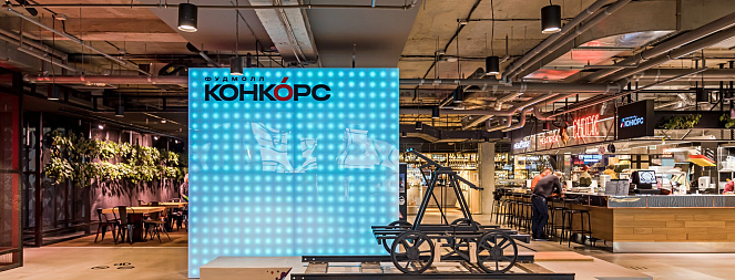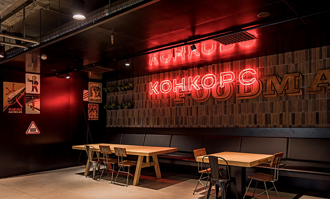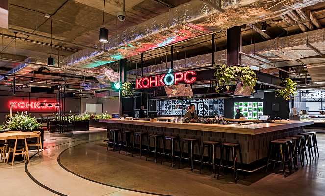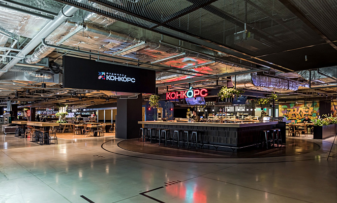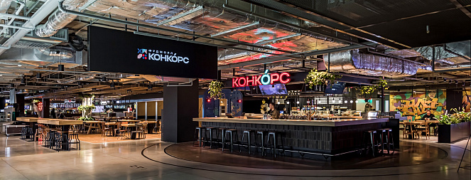КОНКОРС - это уникальное фуд-пространство площадью 3500 кв.м с более 500-ми посадочными местами.
