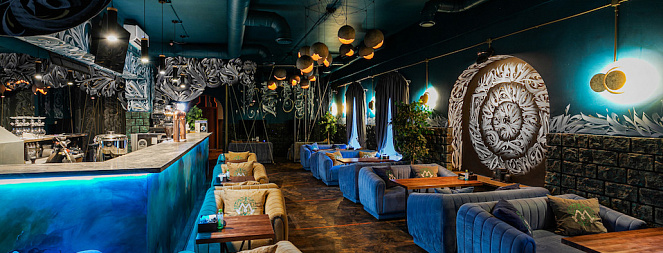 Интерьер заведения выполнен в стиле лофт: в декоре зала использовались дерево, кирпич и металл. Атмосферу уюта и релакса «Мята Lounge» придает приглушенный свет и густой ароматный дым бестабачного кальяна, а мягкие диваны располагают к тому, чтобы расслабиться и оставаться здесь как можно дольше. Кроме того, в кальянной есть аутентичная, окруженная цветами и растениями летняя терраса, расположенная во внутреннем дворике здания и рассчитанная на 50 человек. По вечерам здесь будут выступать известные кавер-бэнды и диджеи. Шеф-повар заведения Артем Осипчик имеет 20-летний опыт работы и профессиональный награды: диплом международной кулинарной олимпиады в Эрфурте (Германия). Работал шеф-поваром в ресторане «James», бренд шеф-поваром караоке-клубов «Богема» и «Опера», шеф-поваром ресторана «Grand Bellagio». Основной акцент в кафе-кальянной сделан на европейскую и американскую кухни. Среди разнообразия закусок, салатов, супов и горячих блюд в заведении особенно рекомендуют попробовать филе-стейк «Огненный Джек», который поджигается прямо при госте, а также томатный суп с пармезаном и сырной пеной. Отдельного внимания заслуживают бургеры и клаб-сэндвичи, начинки у которых самые разные. Есть в меню и бургер «Веган», который состоит из булочки, жареного тофу, овощного «Суго», горчичного соуса, сельдерея, моркови и свежего перца. Среди напитков в меню кафе-кальянной представлены авторские коктейли. Есть свежевыжатый соки, элитные чаи.