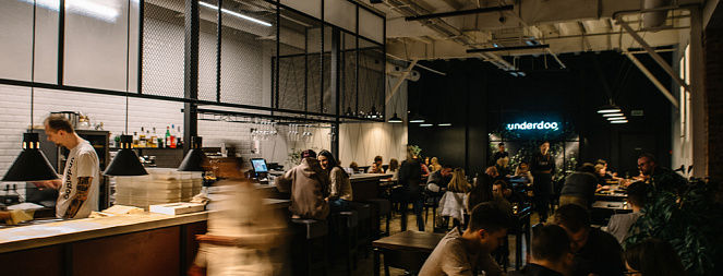 underdog — это не кафе, не заведение и уж точно не пиццерия. underdog — это атмосфера, гастрономия, вина, люди и чистые удовольствия. Здесь не боятся быть собой и никогда не соглашаются на меньшее, даже если так было бы проще. Самые смелые идеи любят рождаться в underdog, так как знают, что они обязательно тут претворятся в жизнь!