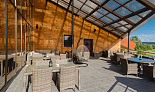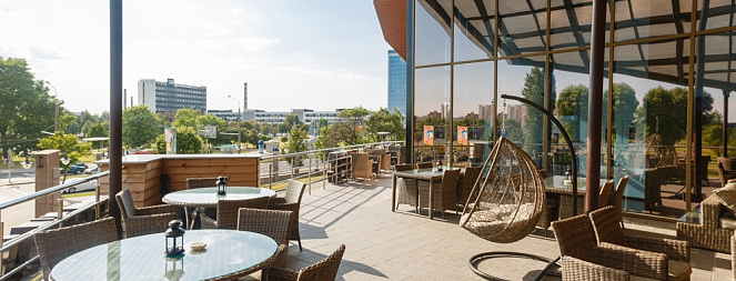 В теплое время года в ресторане есть две просторных террасы на первом и на втором этажах. Идеальный вариант для тех, кто хочет перекусить на свежем воздухе, но не планирует выбираться за город.