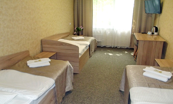 Мы предлагаем своим гостям 2-х местные и 3-х местные, а также семейные номера по доступным ценам. Номера оснащены прекрасными спальными местами и необходимой мебелью, телевизор, чайник а также бесплатным доступам в Интернет через технологию Wi-Fi. Возможны как посуточная аренда, так и долговременное проживание и групповое размещение.