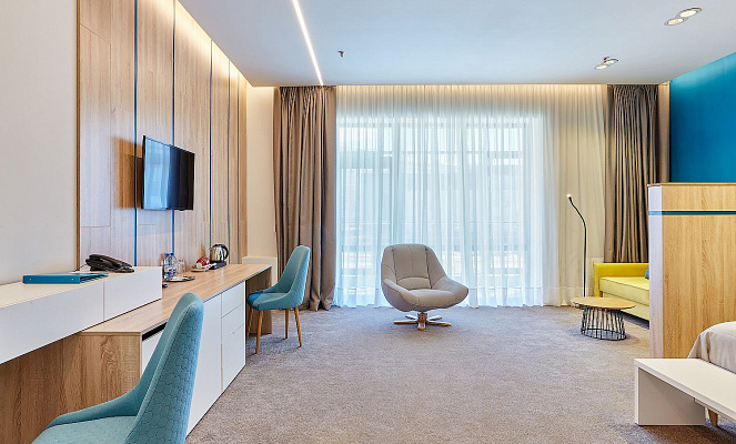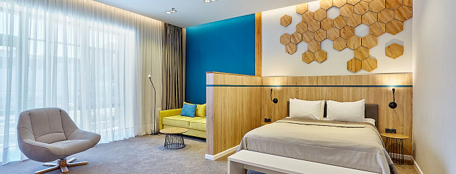 - 5 однокомнатных двухместных номеров повышенной комфортности категории DELUXE;
