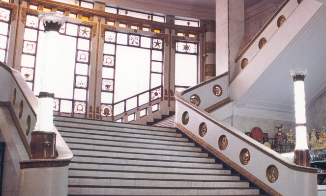 После Великой Отечественной войны ГУМ в свое прежнее здание не вернулся, поскольку улица Советская была почти полностью разрушена и ее решили спланировать заново.