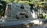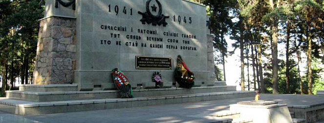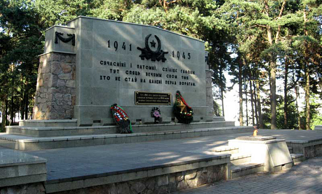 Мемориал расположен посреди небольшого соснового парка. К гранитному монументу ведут ступени, в память о погибших горит Вечный огонь.