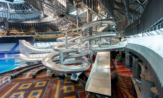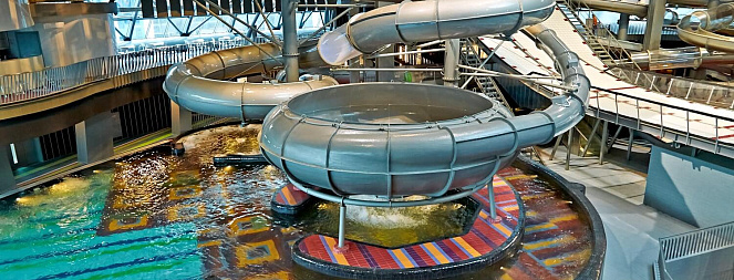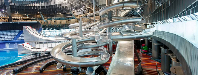Аквапарк находится рядом с Водным спортивным центром "Олимпийский" недалеко от станции метро Академия наук. В центре можно повеселиться в компании семьи и друзей. В самом аквапарке находятся:
