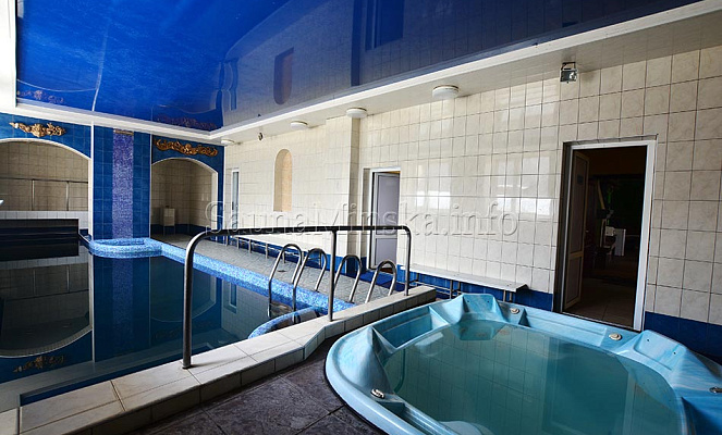 В вашем распоряжении большой бассейн 11 х 4 метра с чудесным водопадом и гейзером. Многие наши гости говорят о том, что им настолько нравится плавать в нём, что даже не хочется его покидать. Но это еще не все! Расслабляющее джакузи на 4 персоны будет прекрасным дополнением ко всему, что вы будете делать в нашей сауне. Если же после парной вам хочется окунуться в холодную воду, то для этого здесь предусмотрена купель.